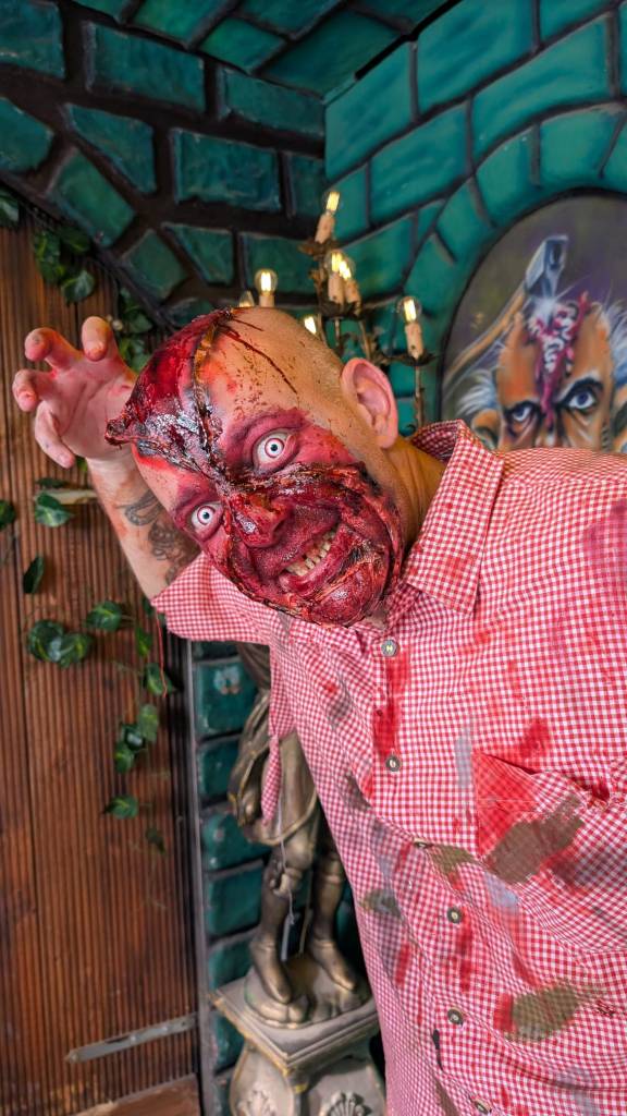 Unsere Mission: Schrecken verbreiten, Gänsehaut erzeugen und die Besucher in eine Welt jenseits des Alltäglichen ziehen. Mit aufwendig gestalteten Masken, Airbrush-Effekten, Latexnarben und jeder Menge Kunstblut haben wir Figuren erschaffen, die irgendwo zwischen Faszination und Abscheu balancieren. Von abgetrennten Köpfen über Meeresleichen bis hin zu Monstern mit Eiterbeulen – wir haben alles aufgefahren, was Albträume lebendig macht.