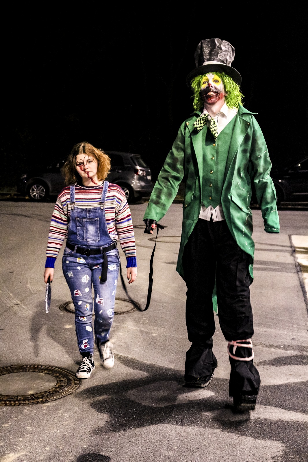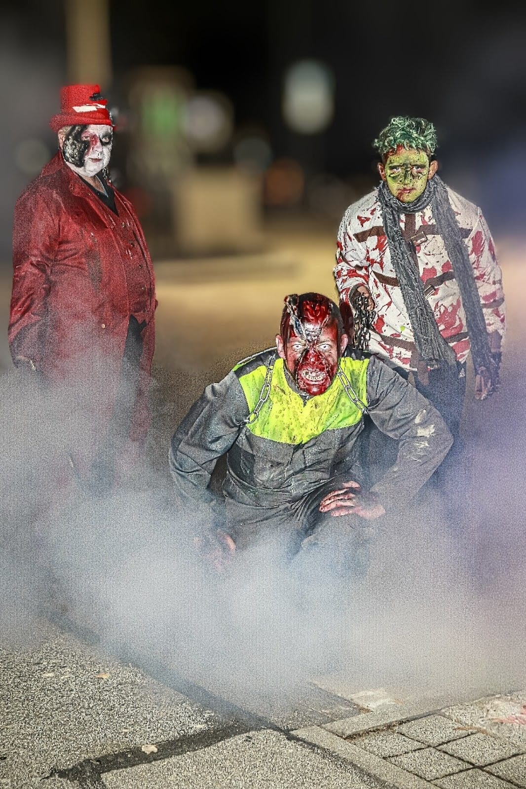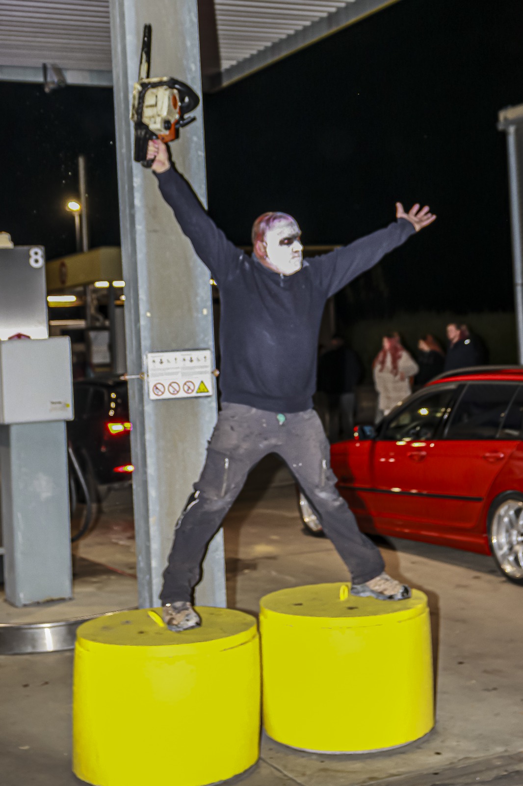 Denn hinter den Autos, zwischen Reifenstapeln und Tankschläuchen, lauerten unsere Zombies, Clowns und Schattenwesen auf den perfekten Moment. Und wenn sie zuschlugen, hallten die Schreie weit über die Tankstelle hinaus.